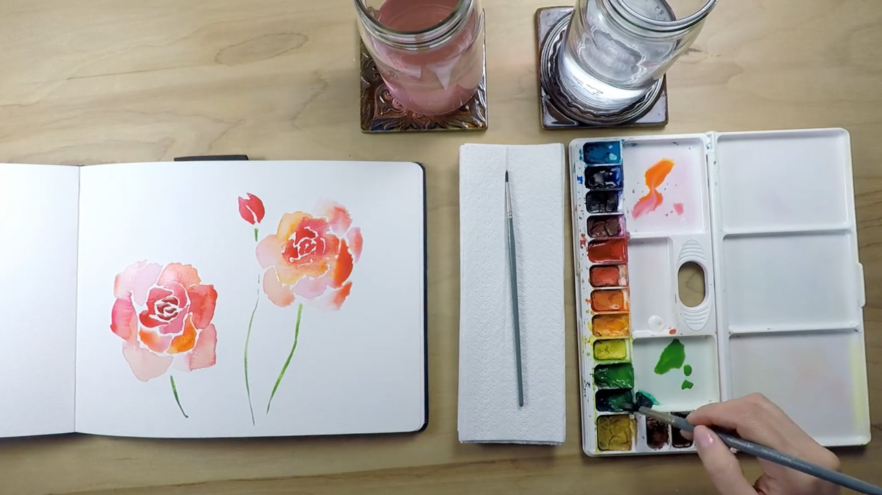 The elegant rose - a Modern Watercolor prerecorded project teaching you how to paint these lovely flowers.